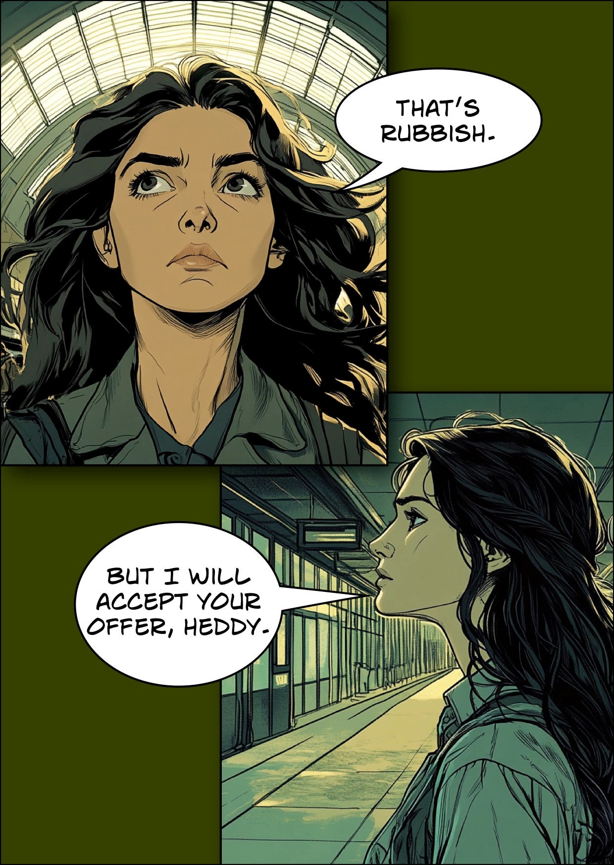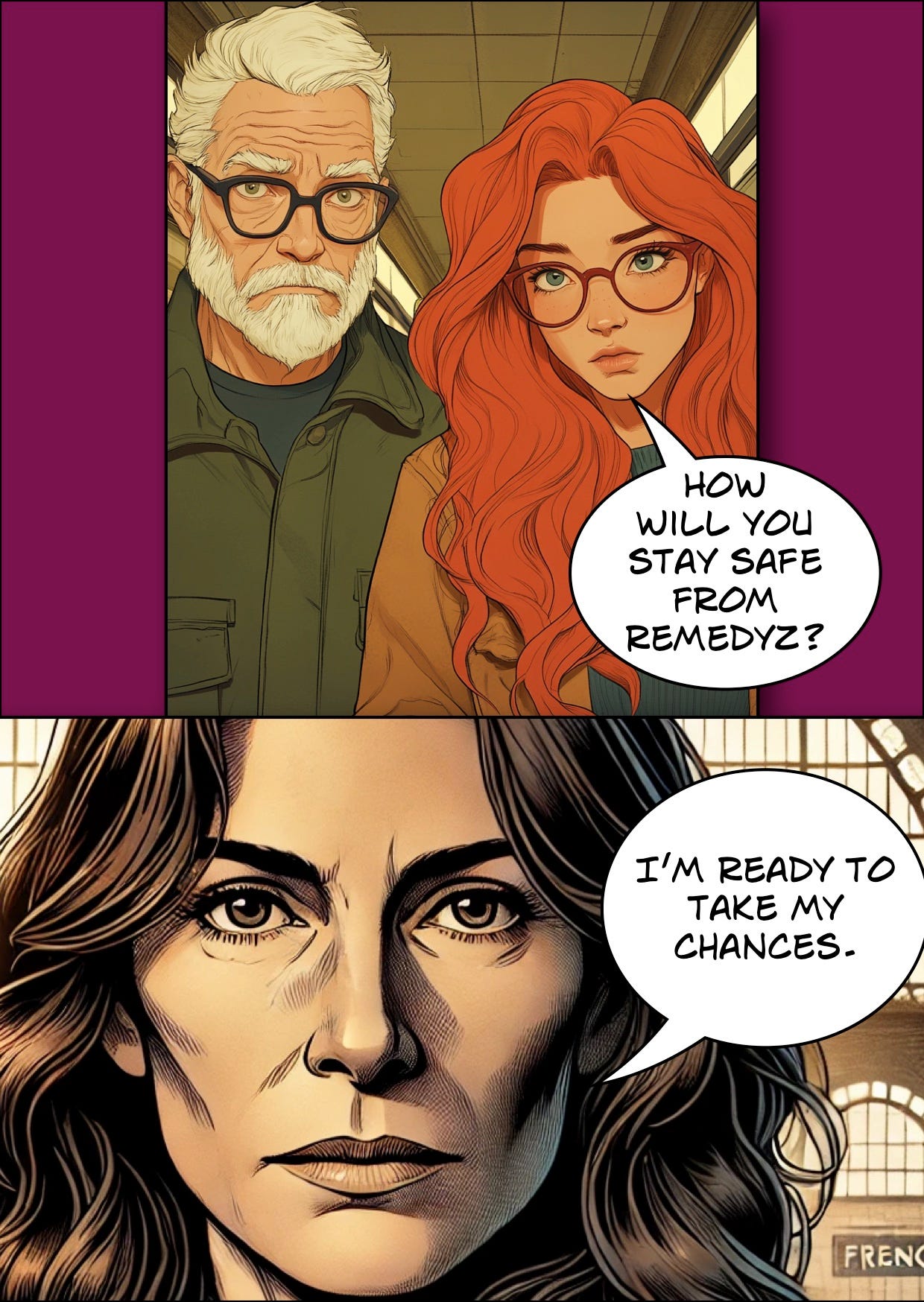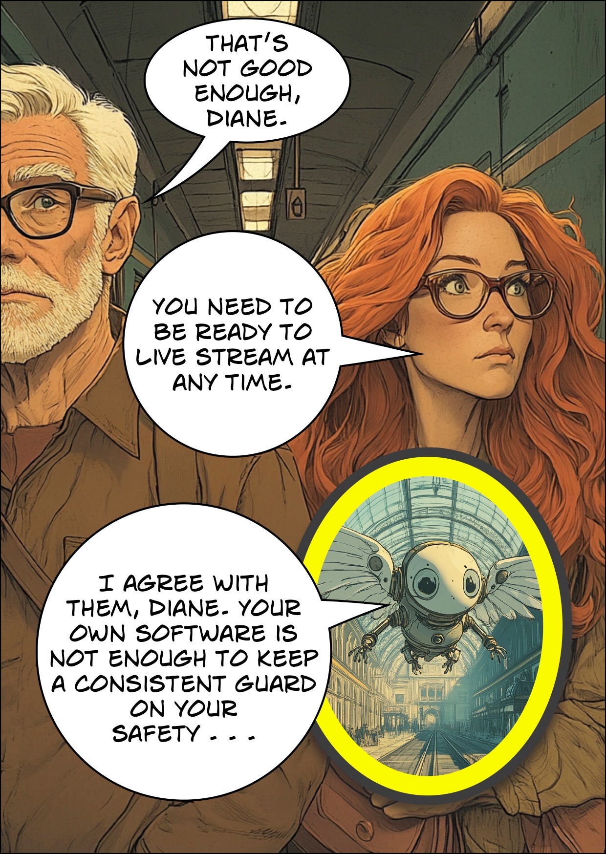 Last time: Diane rescued us from the clutches of Remedyz. And then Heddy saved her by doing a live stream of the Remedyz thugs who were threatening her.