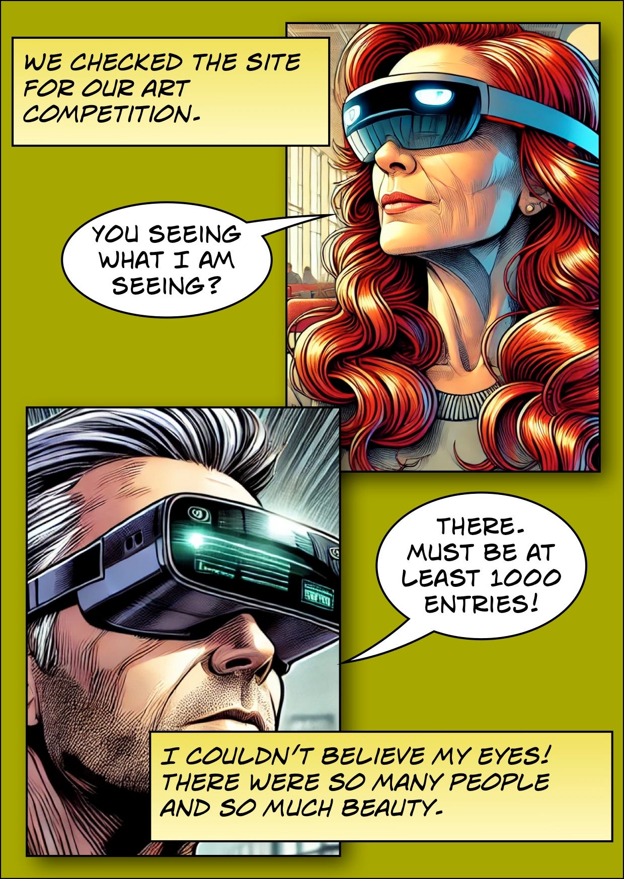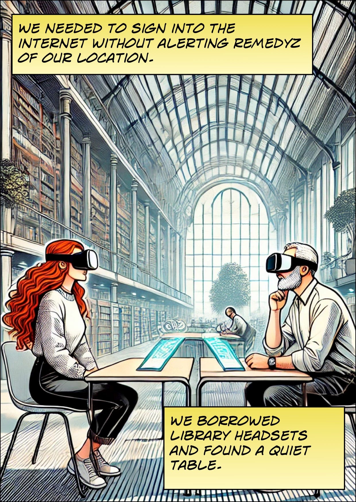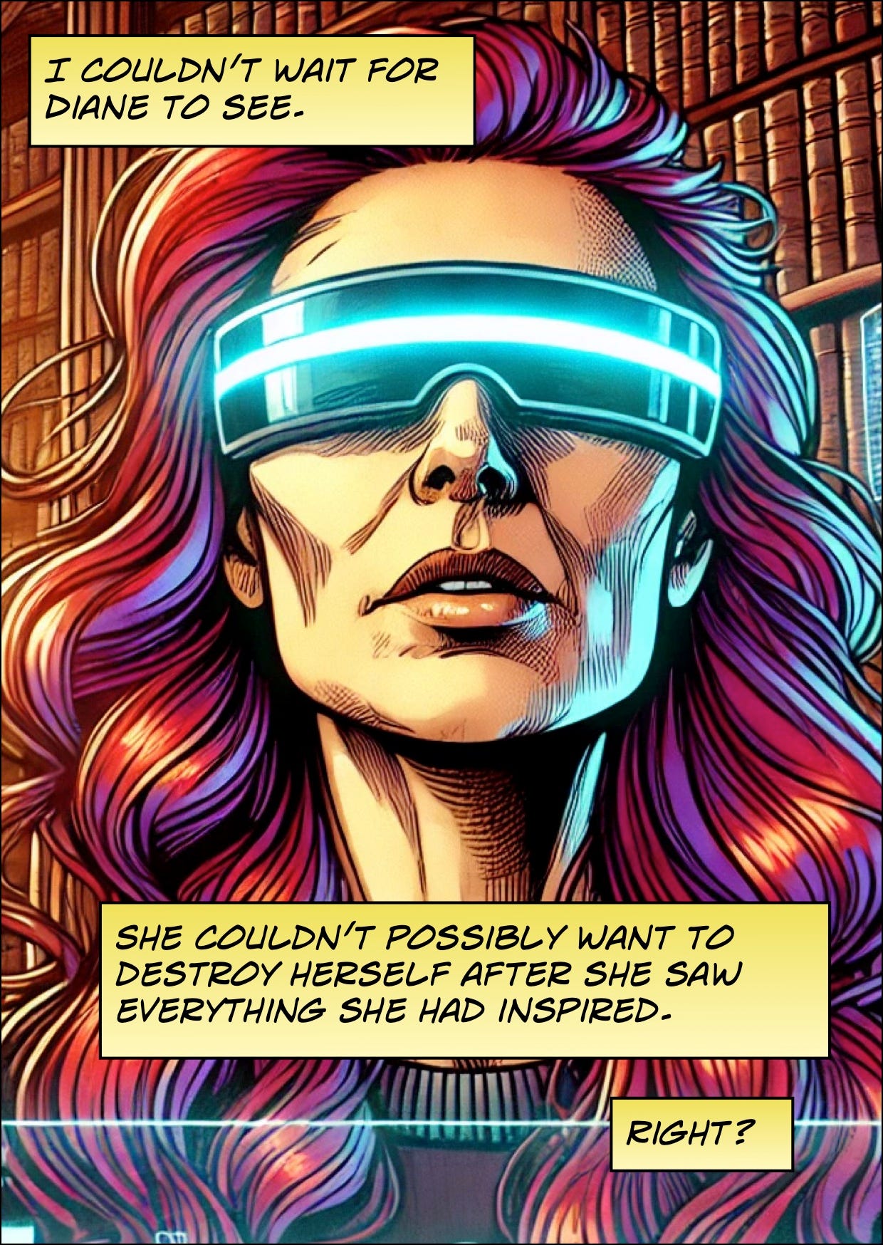 In the last chapter Diane and Heddy went to hide in a robot warehouse until it was time to announce the winner of our art contest. We would introduce Diane live to the entrants so that Remedyz couldn’t interfere or threaten her.